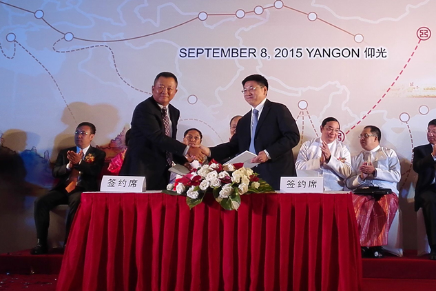 聯(lián)合外經(jīng)馮柯董事長(zhǎng)與工商銀行專(zhuān)項(xiàng)融資部劉建昌副總經(jīng)理簽署仰光THAKETA天然氣聯(lián)合循環(huán)電廠項(xiàng)目融資合作備忘錄