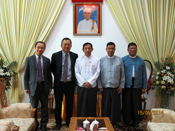 2014年5月15日當?shù)貢r間早上9點, 內(nèi)比都鐵道部,云南能投聯(lián)合外經(jīng)股份有限公司董事長馮柯先生與緬甸鐵道部部長U Than Htay,就加強雙邊鐵路方面的經(jīng)濟技術(shù)合作交換意見。鐵道部副部長 U Myint Thein 和U Lwin Thaung等參加了會見。