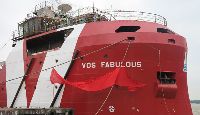 近日,南京東嘉船舶舉行了兩艘50米應(yīng)急搜救船的命名儀式,這也是在北海油田的應(yīng)急搜救船首次采用亞洲設(shè)計(jì)公司設(shè)計(jì),并由中國船廠制造。以往此類船型一般是采用歐洲設(shè)計(jì),歐洲制造,這標(biāo)志著國內(nèi)船廠已經(jīng)有能力承建海工高標(biāo)準(zhǔn)的特種船型。 船東方Vroon公司的總經(jīng)理,商務(wù)總監(jiān)及前董事長出席,ABS也派代表參加了儀式。